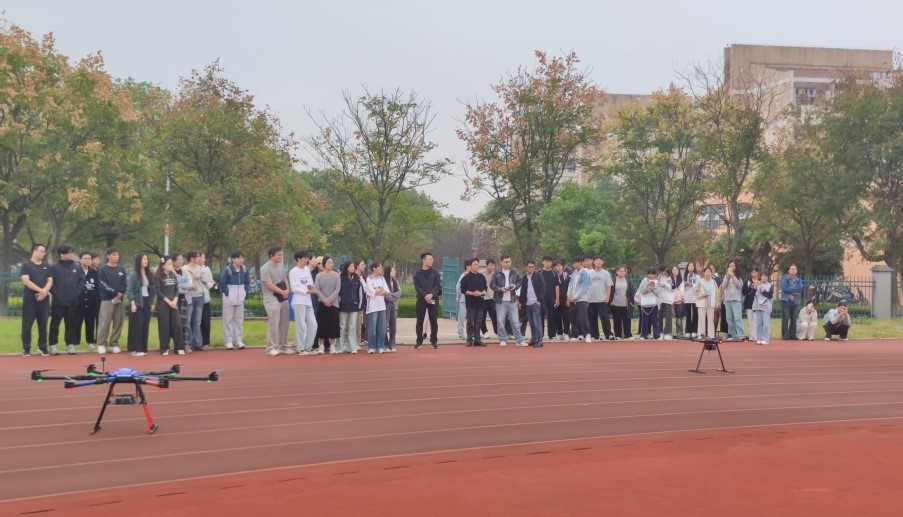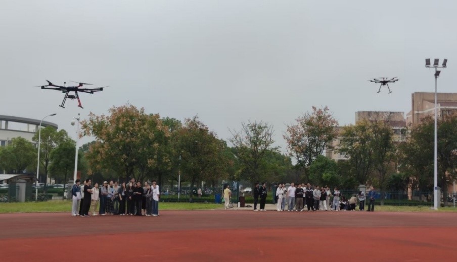 活动中,企业技术专家系统讲解了无人机地面站路径规划的核心原理、操作流程及安全注意事项,并现场演示了航线规划与任务参数设置。随后,在专业飞手的现场指导下,学生分组进行了行业级无人机实操训练,依次完成起飞、悬停、航线自动飞行和精准降落等关键操作,全面提升了无人机操控能力与实战水平。