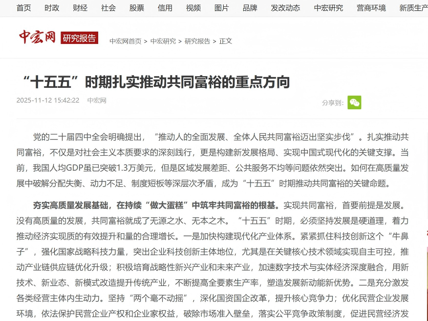余卫博士撰写的《“十五五”时期扎实推动共同富裕的重点方向》一文在《中宏网》发表。中宏网是国家发改委主管、宏观经济杂志社主办的中央重点新闻网站,是国家经济发展成果的重要展示平台。