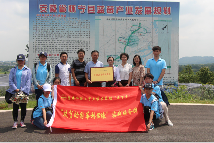 团总支相关老师的带领下赴素有“独秀故里,蓝莓之乡”之称的安徽蓝莓第一镇——黄墩镇展开调研。在黄墩镇团委书记汪雄的带领下,队员们参观了黄墩镇的蓝莓产业园、蓝莓展示馆、蓝莓深加工厂,扶贫办主任及相关负责人的详细介绍为大家把握精准扶贫的概念,了解黄墩镇以特色产业助力精准脱贫工作上了宝贵的一课。在怀宁美林蓝莓产业有限公司和安徽久越蓝莓科技发展有限公司的调研过程中,队员们详细了解了蓝莓发展模式及其扶贫措施,并运用专业背景知识,对其在电商销售方面提出了意见和建议。期间,明升体育