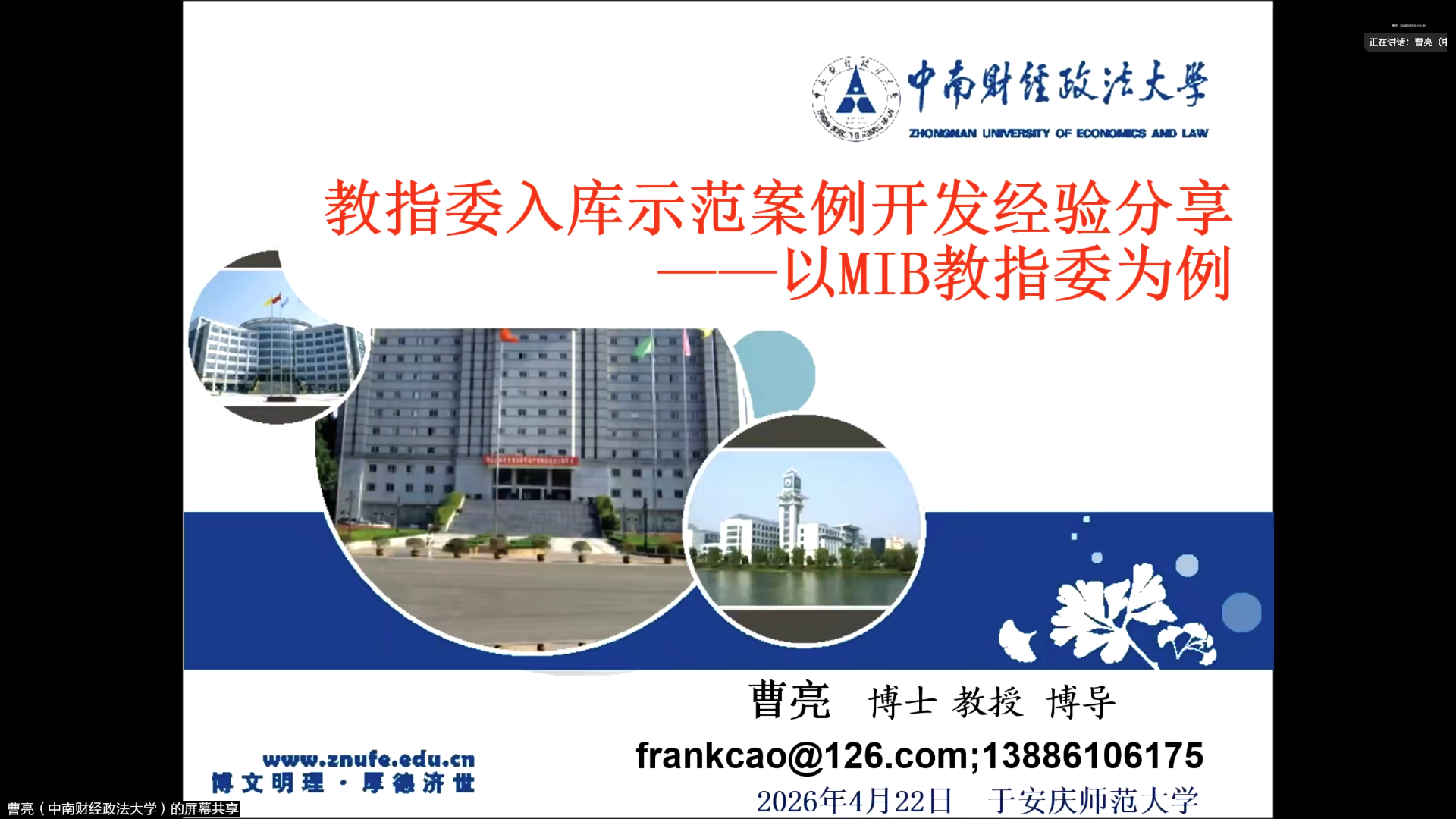 联合主办,安徽省数字经济研究中心、安庆师范大学青年社科学者协会承办的“明升有道”第36期学术报告会成功举办。中南财经政法大学曹亮教授应邀作题为“教指委入库示范案例开发经验分享——以MIB教指委为例”的学术报告,明升体育